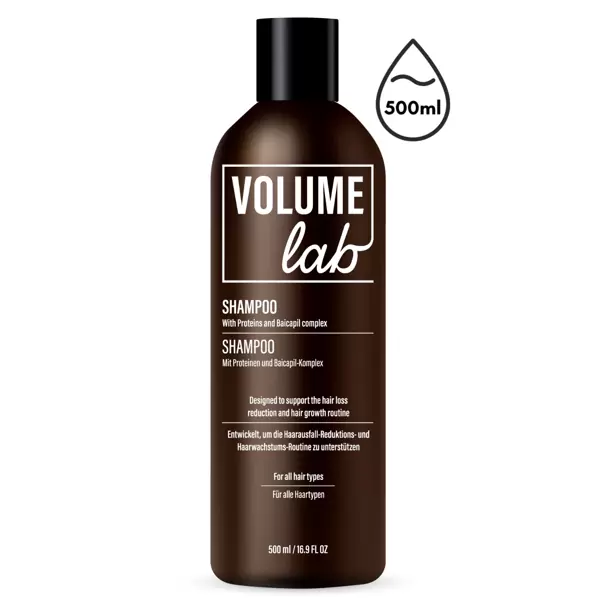 VOLUME LAB šampūnas (500 ml): tepkite ant drėgnų plaukų, leiskite suputoti ir nuplaukite.